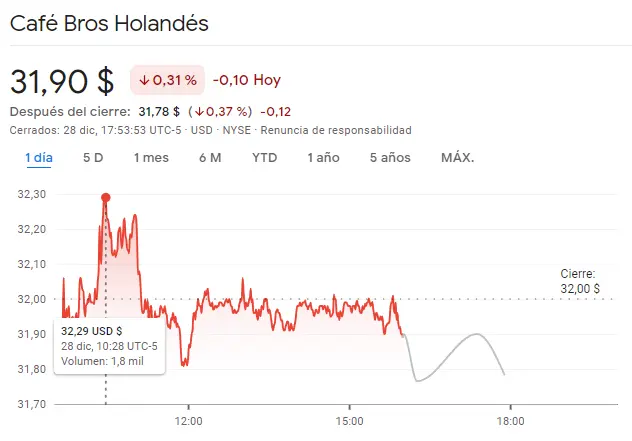 Gráfico de las cotizaciones del café en un espacio de tiempo de un día