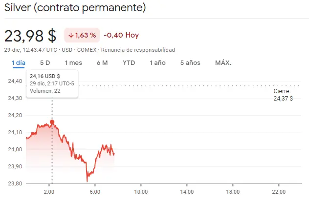 Gráfico de las cotizaciones de la plata en un espacio de tiempo de un día