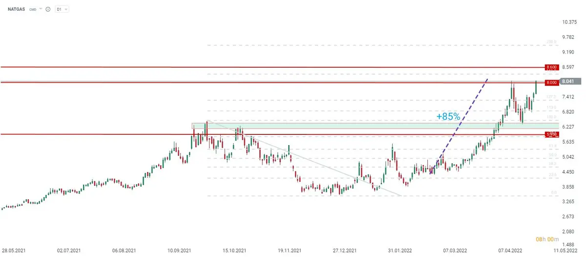 Los precios del gas natural están aumentando nuevamente en medio de la desaceleración del crecimiento de la producción de EE.UU. y la infraestructura insuficiente para aumentar la producción de gas y la disponibilidad para los consumidores de EE.UU. Las regiones clave de producción de gas de esquisto en los EE.UU., a saber, Permian y Appalachia, indican que han alcanzado el límite de transmisión en los gasoductos de los EE.UU. Además, tenemos mucha incertidumbre con respecto al suministro de gas de Rusia a los países europeos que no han decidido pagar en rublos. Italia señala que no quiere pagar en rublos, pero sería desastroso para la economía cortar el suministro de gas a Rusia antes de llenar sus instalaciones de almacenamiento.