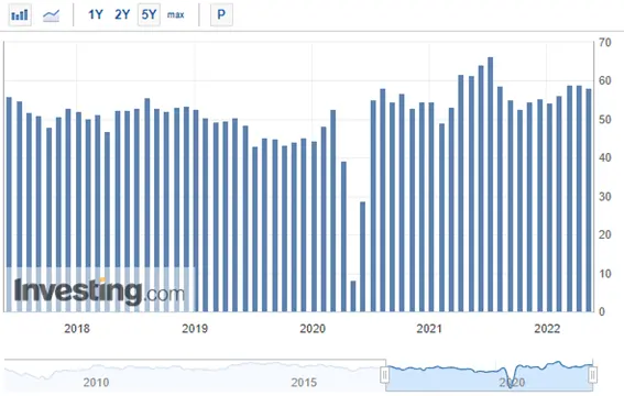En el anterior mes de abril, las estimaciones de quedaron cortas ya que se esperaba un 58.0 y se acabó consiguiendo un 58.2.