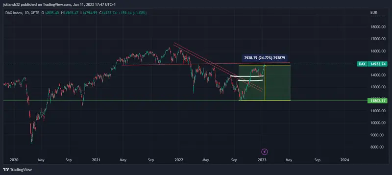 El mercado está modo optimista en el momento para el 2023, las variables positivas que influyen en la gran recuperación del índice alemán Dax 30, es la reactivación económica de China, bajada de las materias primas (menores presiones inflacionistas), y posibles negociaciones en el conflicto de Rusia y Ucrania.