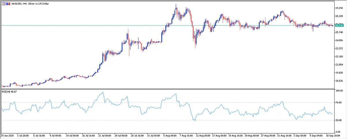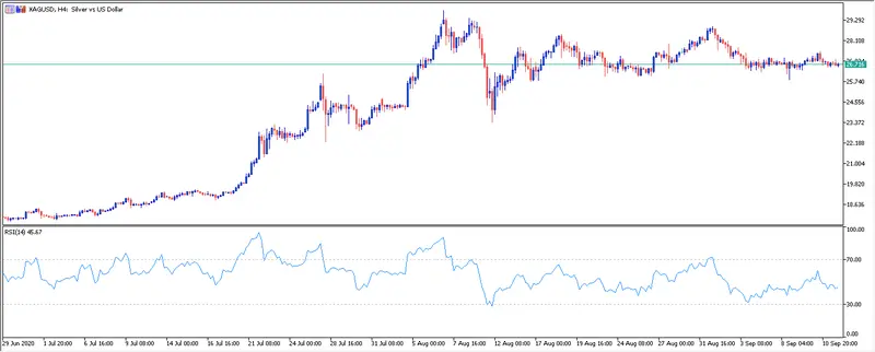 Cambio de la Plata en gráfico con intervalo de 4 horas