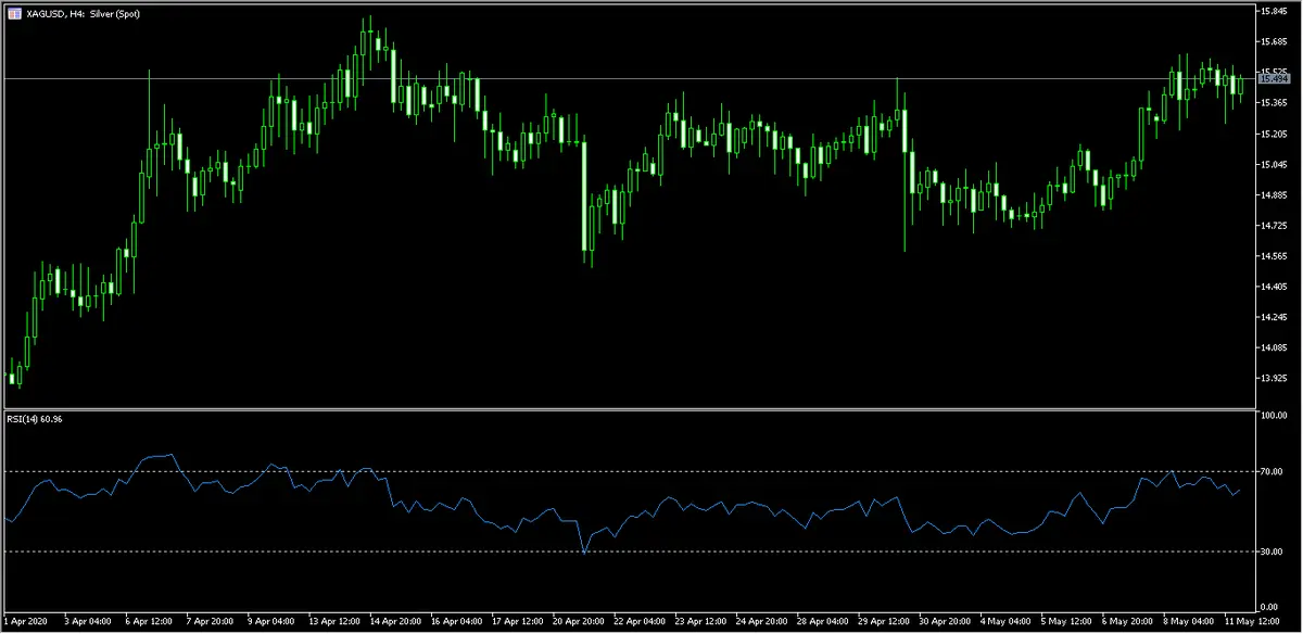 Cambio de la Plata en gráfico con intervalo de 4 horas