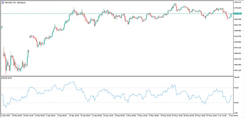 Cambio del Oro en gráfico con intervalo de 4 horas