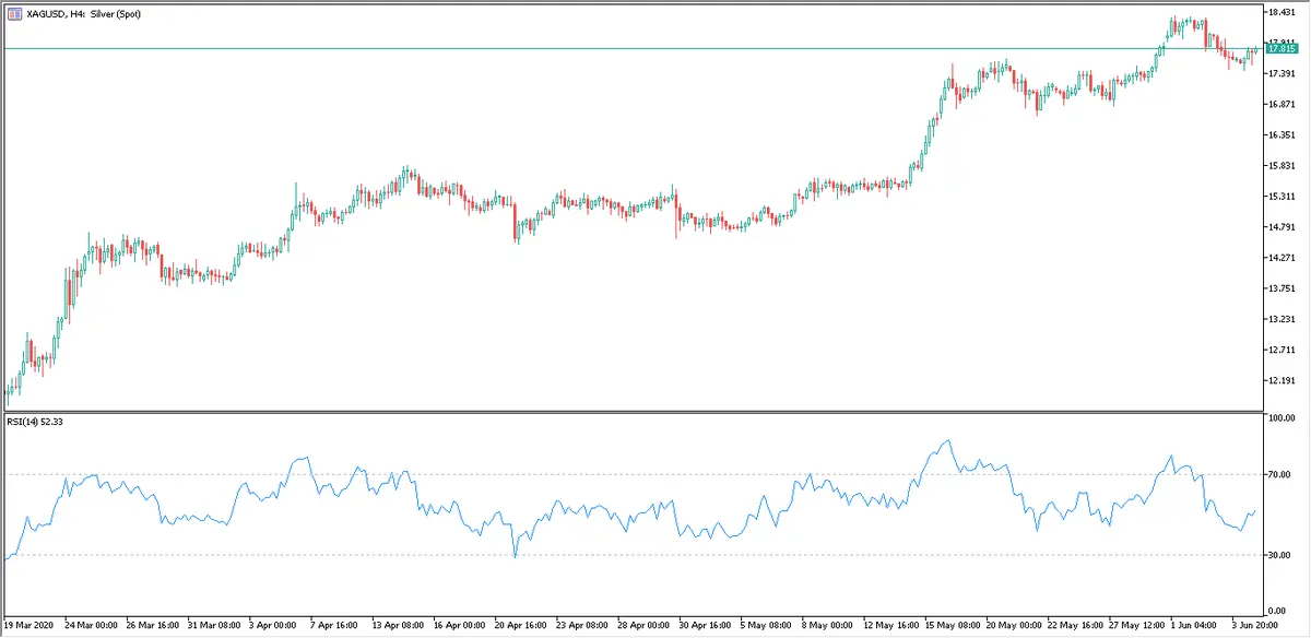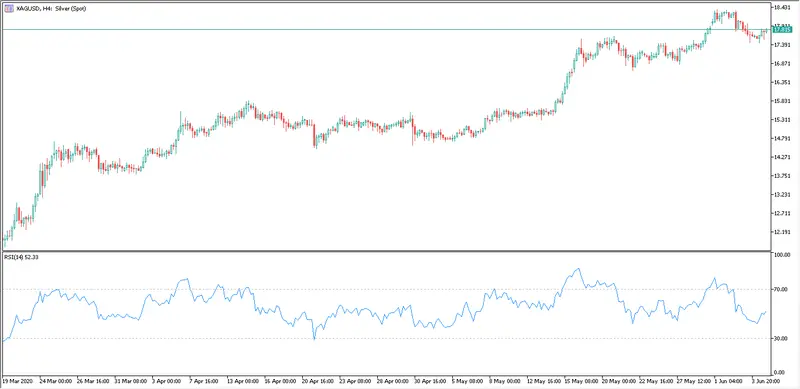 Cambio de la Plata en gráfico con intervalo de 4 horas