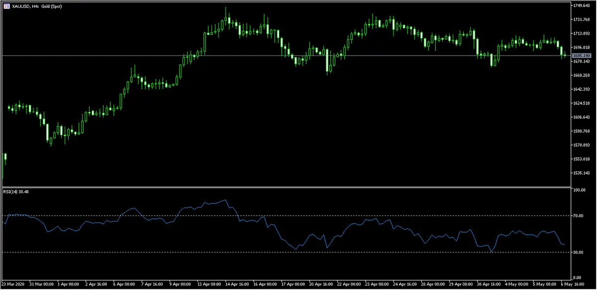 No obstante, el indicador RSI (Relative Strength Index) lo encontramos en nivel del 38%, de tornar al alza, el oro podría situar su cotización en 1.712,41 dólares por onza además, la línea de resistencia secundaria la encontramos en el nivel de cambio de 1.722,13 dólares por onza precio máximo, desde el 27 de abril.