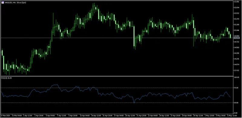 Cambio de la Plata en gráfico con intervalo de 4 horas