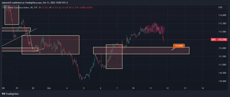 Gráfico del índice del dólar en temporalidad de 30 minutos fuente tradingview