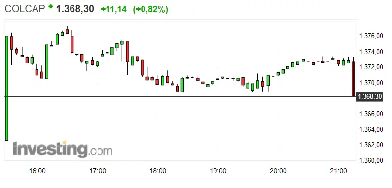 Gráfico del índice COLCAP en un espacio de tiempo de un día