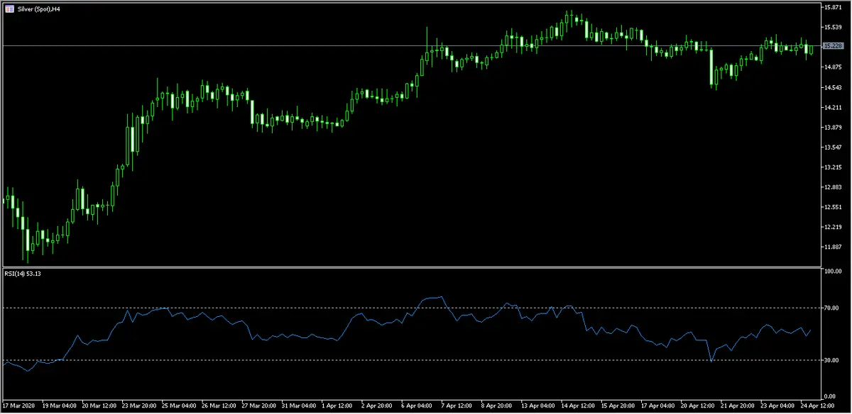 Cambio de la Plata en gráfico con intervalo de 4 horas