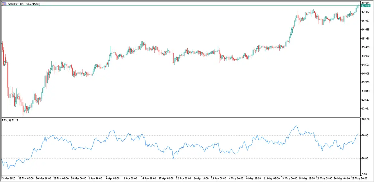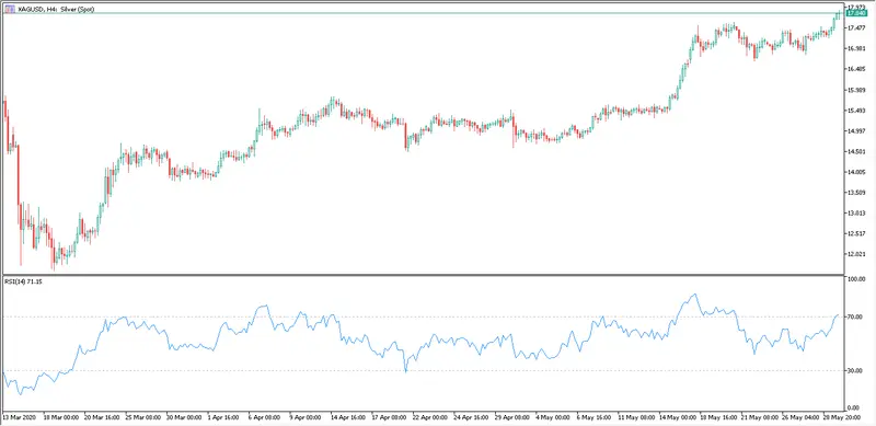 Cambio de la Plata en gráfico con intervalo de 4 horas