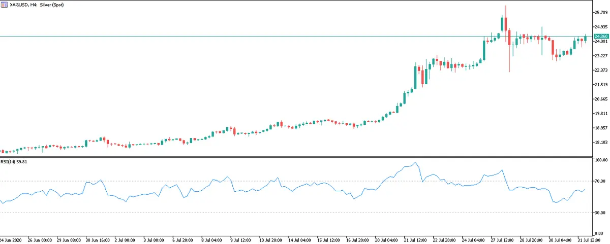 Cambio de la Plata en gráfico con temporalidad de 4 horas