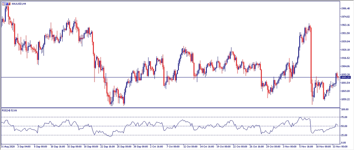 Y es que el metal dorado ha iniciado la semana en curso en la cotización de 1.957,32 dólares por onza tras lo cual, durante la misma jornada ha registrado una impresionante caída hasta el precio de 1.850,19 dólares por onza equivalente, al nivel mínimo desde el 28 de septiembre. No obstante, el oro experimenta rebote recuperando una mínima parte de las pérdidas y sitúa su nivel de cambio en referencia al cierre semanal en 1.889,28 dólares por onza lo cual, nos deja con una caída porcentual en referencia al valor de apertura de un -3,48%. El indicador “RSI” (Relative Strength Index) carece de indicios en referencia a la dirección a seguir en el corto plazo, mientras sitúa su valor en “52”.