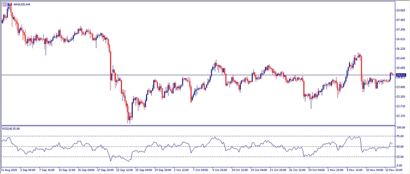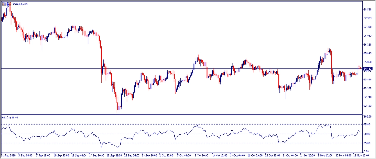 Cambio de la Plata en gráfico con intervalo de 4 horas
