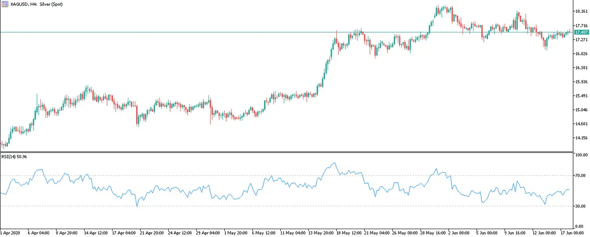 Cambio de la Plata en gráfico con intervalo de 4 horas