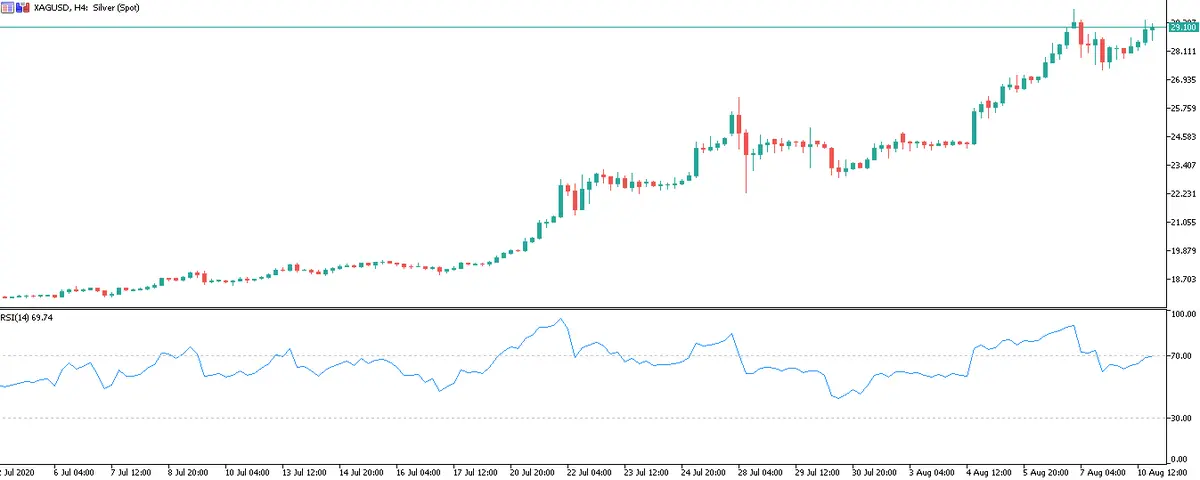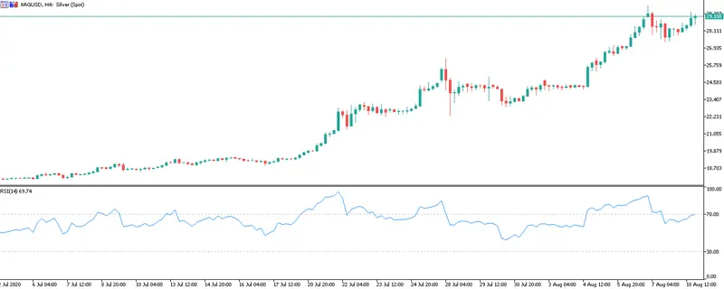 Cambio de la Plata en gráfico con temporalidad de 4 horas