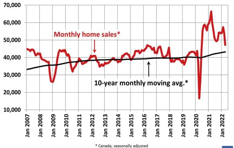 “Después de un par de años sin precedentes, los mercados inmobiliarios en muchas partes de Canadá se han enfriado bastante en los últimos dos meses, en línea con un aumento en las tasas de interés y la fatiga de los compradores”, dijo Jill Oudil, presidenta de CREA.
