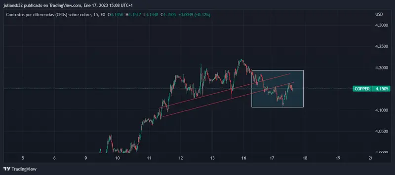 El precio del cobre está muy correlacionado con la economía de China, ya que es una de las materias primas más demandadas cuando se genera crecimiento económico, y los inversores están optimistas con el levantamiento de las restricciones y los estímulos del gobierno. En la sesión de hoy, el precio del cobre sintió temor del positivismo de las últimas semanas, puesto que los datos de crecimiento económico en China muestran una gran debilidad en el 2022. En la sesión actual el precio del cobre se ubica en la zona de los 4,1490, lo que representa una caída de -0,0670 y una variación negativa de -1,59%.