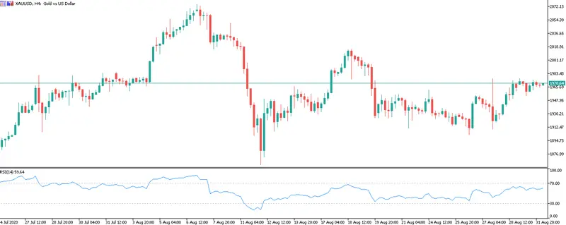 Cambio del Oro en gráfico con intervalo de 4 horas