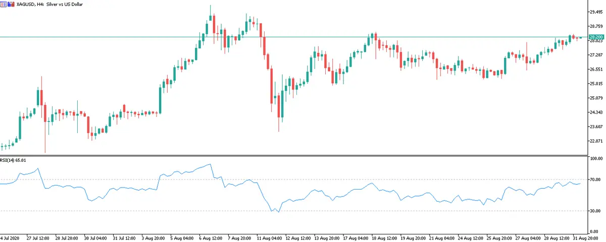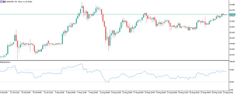 Cambio de la Plata en gráfico con temporalidad de 4 horas
