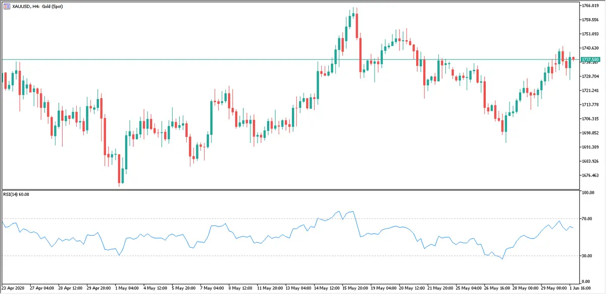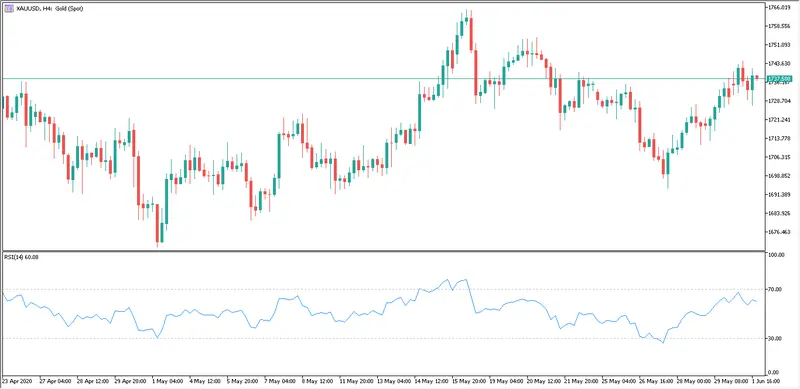 No obstante, el indicador RSI (Relative Strength Index) lo encontramos en niveles del 59%, de tornar bajista, el metal dorado encontraría el nivel de apoyo más cercano en la cotización de 1.726,80 dólares por onza además, la línea de soporte secundario está situada en el nivel de cambio de 1.710,68 dólares por onza.