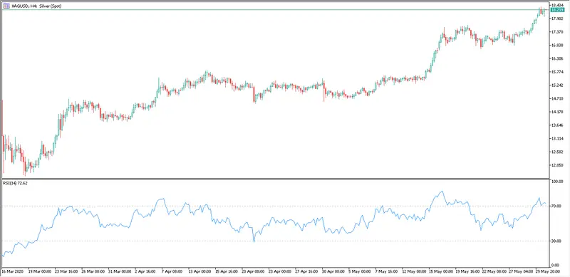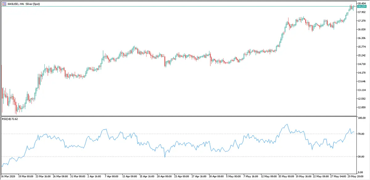 Cambio de la Plata en gráfico con intervalo de 4 horas