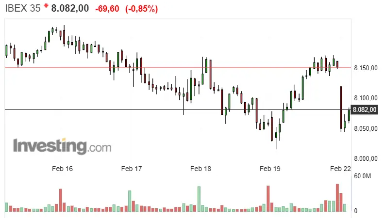 Gráfico del índice Ibex 35 en un espacio de tiempo de siete días