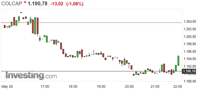 Gráfico del índice COLCAP en un espacio de tiempo del un día