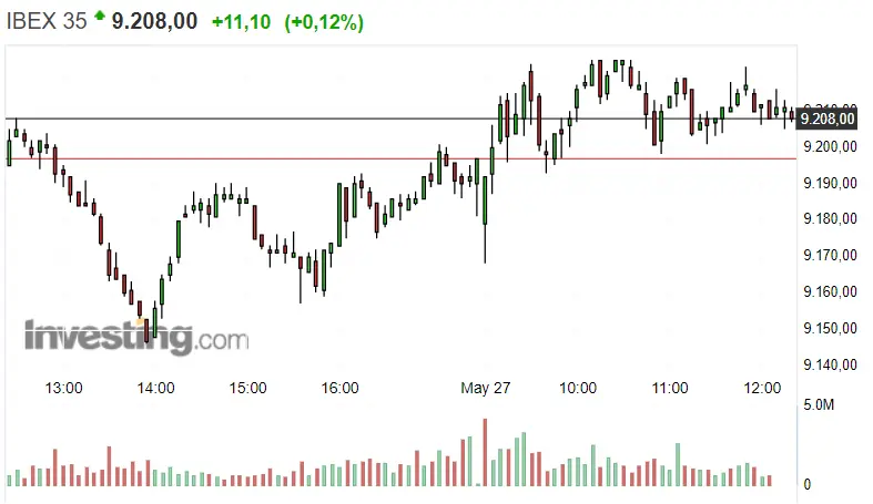 Gráfico del índice Ibex 35 en un espacio de tiempo de un día